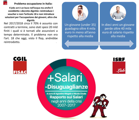 Non dimentichiamo pure la necessità di richiedere aumenti salariali, ad incominciare dalla nostra categoria, e la riduzione delle ore lavorate a parità di salario.