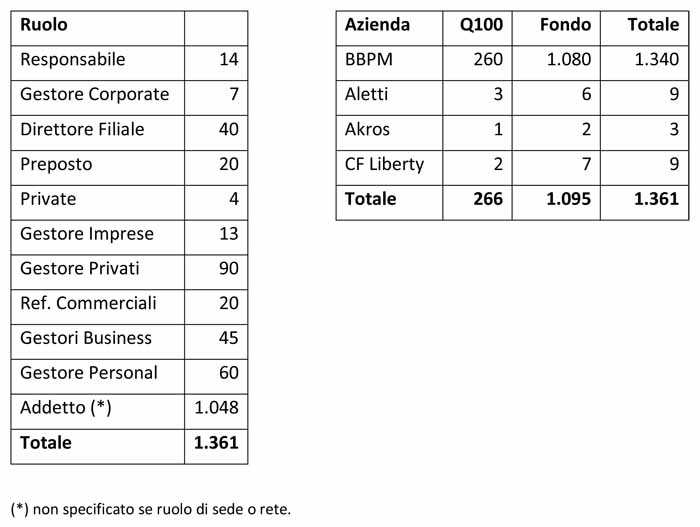 Rispetto al bacino totale di 1.500 posizioni (300 di Quota 100 e 1.200 di Fondo), al momento sono state identificate 1.361 posizioni (vedi tabelle in calce).
