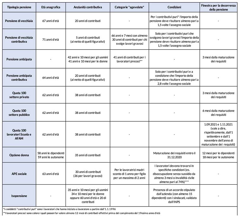 Pensioni: tutti i requisiti e le opzioni per andare in pensione nel 2021
