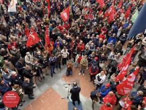 “Deve essere chiaro – ha proseguito Landini -: se qualcuno ha pensato di intimidirci, di metterci paura, di farci stare zitti, deve sapere che la Cgil e il movimento dei lavoratori hanno già sconfitto il fascismo in questo Paese e riconquistato la democrazia. Non ci intimidiscono, non ci fanno paura”.