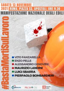Per queste ragioni le Segreterie Nazionali di FenealUil, Filca-Cisl, FilleaCgil organizzeranno sin dai prossimi giorni attivi territoriali, provinciali e regionali, di iscritti e delegati al fine di sostenere la vertenza più generale della FLC – Federazione dei Lavoratori delle Costruzioni e di CGIL, CISL e UIL per dire #BastaMortiSulLavoro, per giungere alla Manifestazione Nazionale del 13 novembre 2021 a Roma.