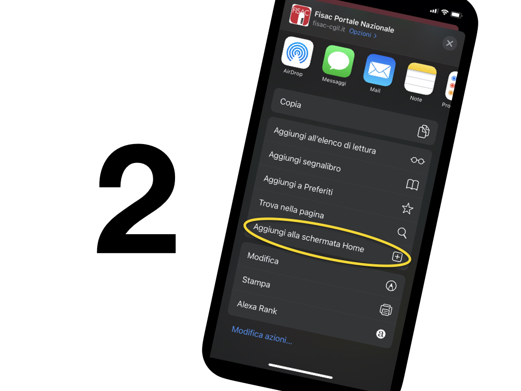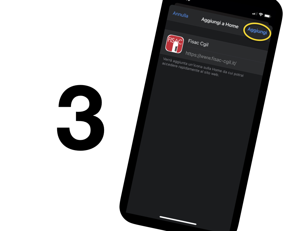 Clicca sul pulsante “Aggiungi a schermata Home”