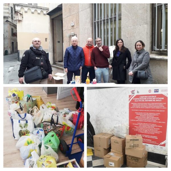 In collaborazione con l’Emporio Solidale di via Canneto il Lungo consegna, tutti i mesi, a centinaia di famiglie in gravi difficoltà economiche del centro storico di Genova, un pacco alimentare.