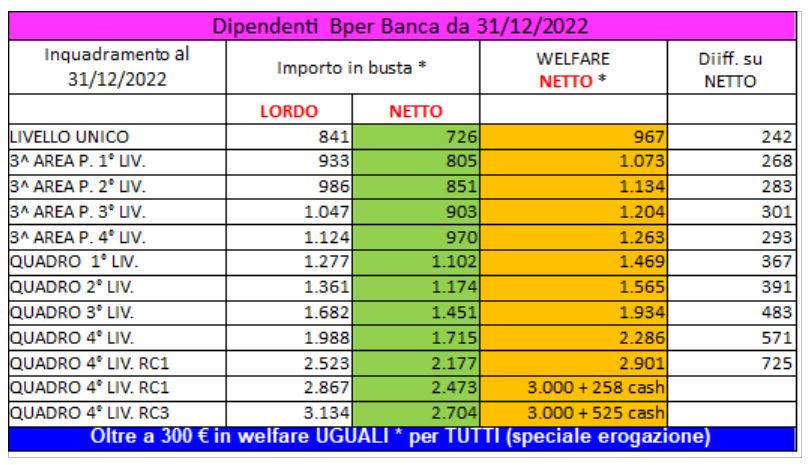 Gli importi in welfare saranno netti.