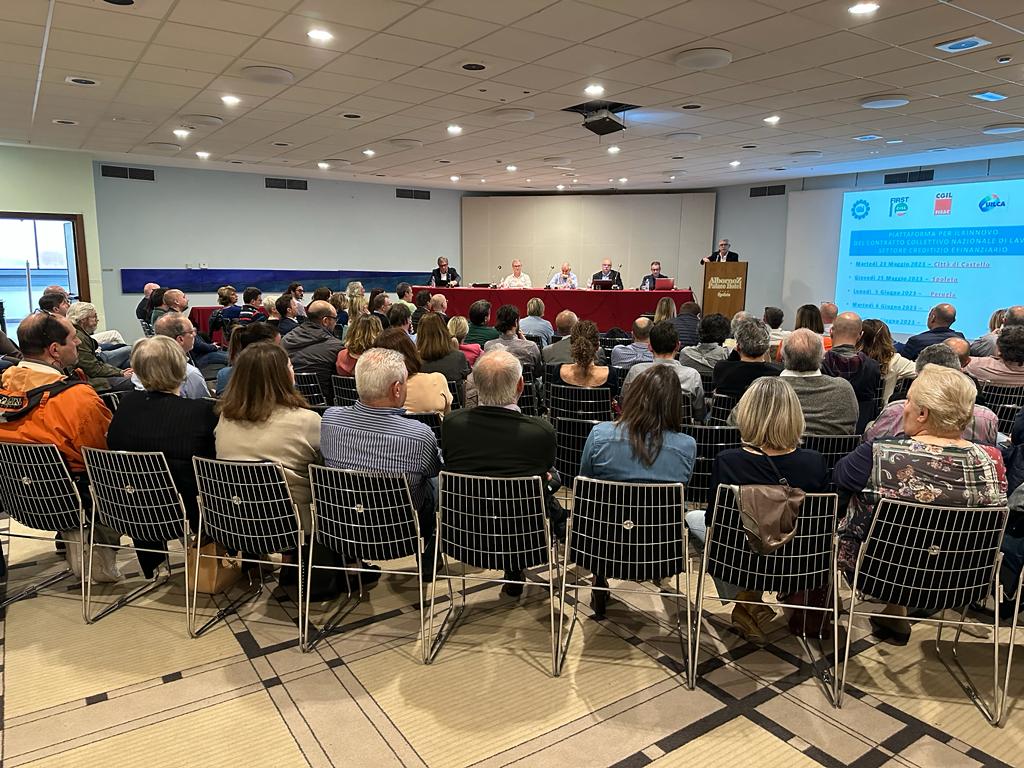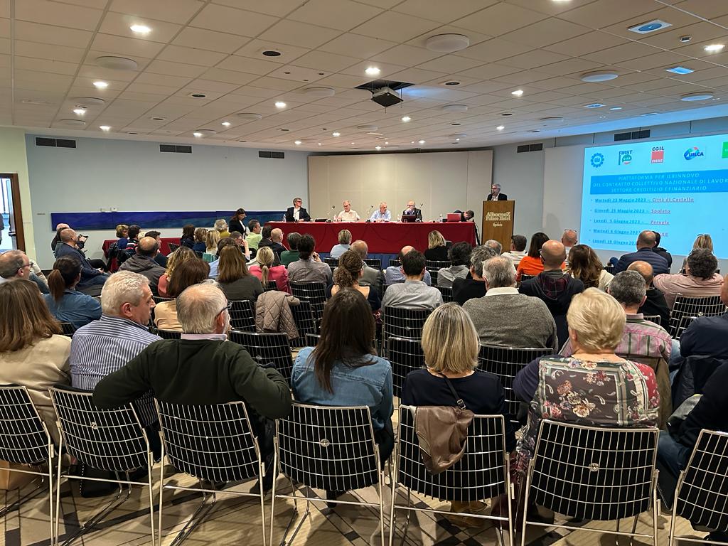 L’ assemblea Unitaria di piazza in Umbria, tenutasi a Spoleto alla presenza dei Segretari Generali Regionali delle Oo.Ss. del Credito ha illustrato alla vasta platea di iscritti (90) i punti del rinnovo che è stato votato positivamente all’unanimità dei presenti.