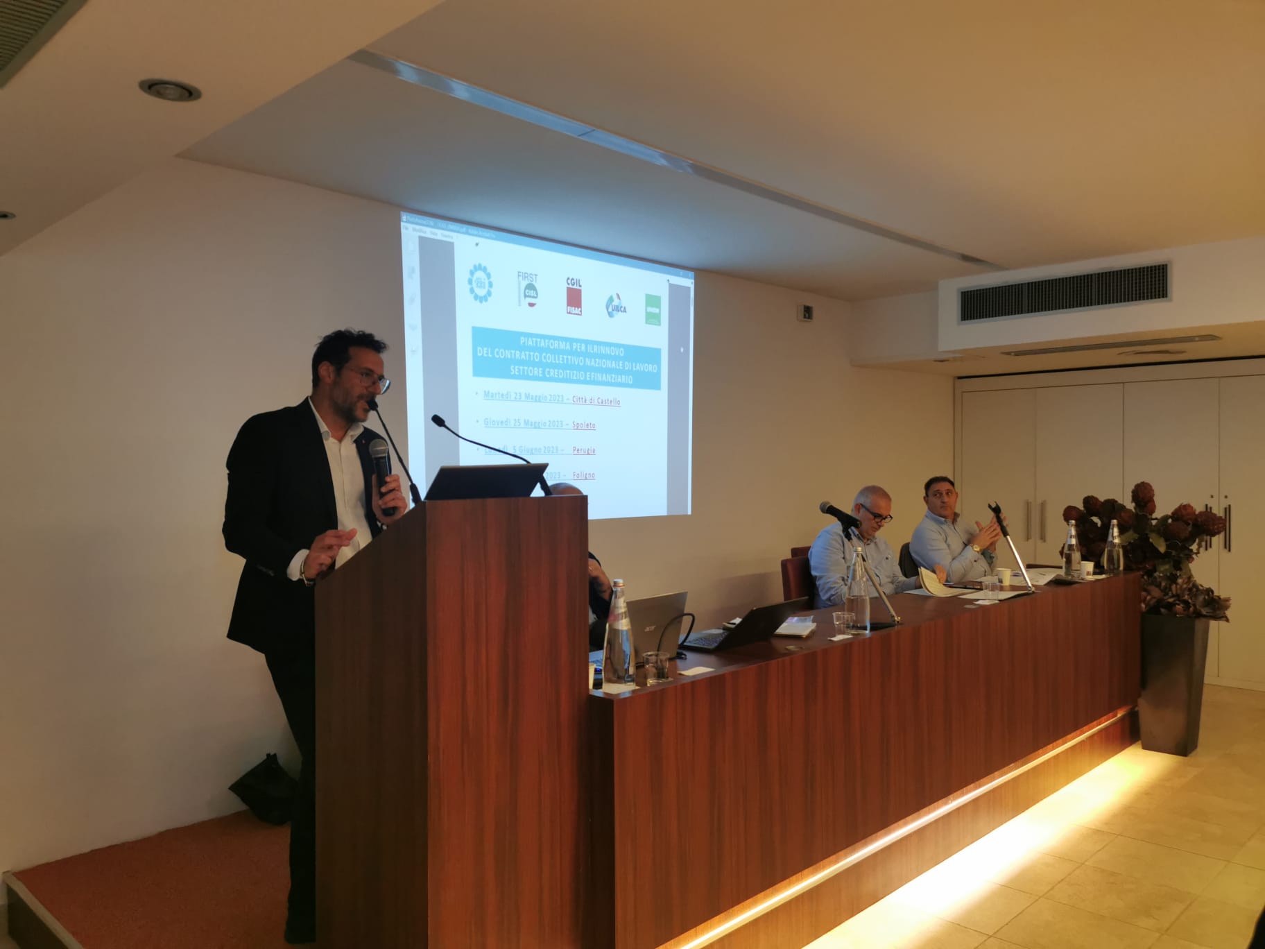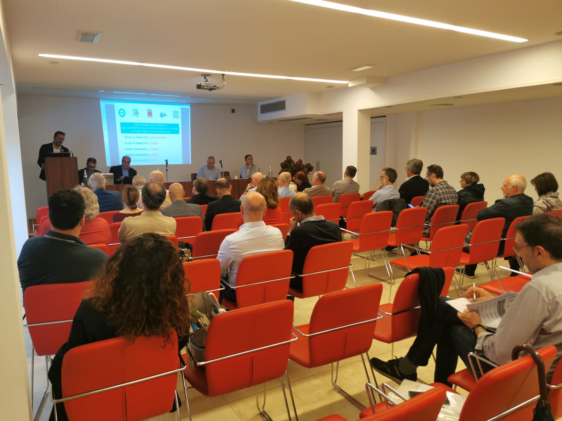 L’ assemblea Unitaria di piazza in Umbria, tenutasi a Foligno alla presenza dei Segretari Generali Regionali delle Oo.Ss. del Credito ha illustrato alla vasta platea di iscritti (110) i punti del rinnovo che è stato votato positivamente all’unanimità dei presenti.