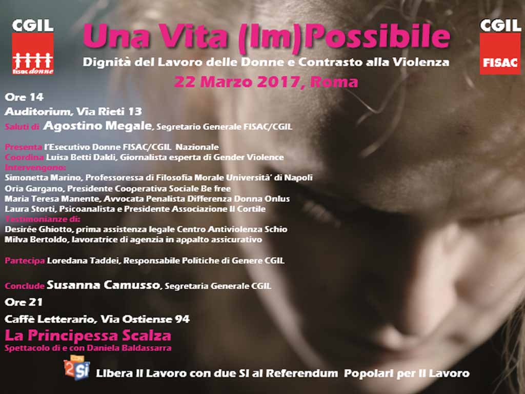 Il 22 marzo si è tenuta a Roma l’iniziativa pubblica dal titolo “Una vita (im)possibile. Dignità del lavoro delle donne e contrasto alla violenza”, organizzata dall’Esecutivo Nazionale Donne.
