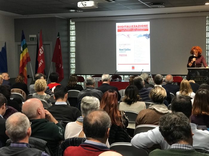 Nell’ambito del IX Congresso della FISAC/CGIL Veneto si è tenuta la tavola rotonda dal titolo “digitalizzazione, il futuro del lavoro e della contrattazione nelle banche e nelle assicurazioni”. La discussione che si è sviluppata sullo spunto dell’introduzione di Chiara Canton, non solo interessante ma anche briosa grazie alle opinioni non sempre univoche degli attori presenti, è stata comunque attraversata da un fil rouge: l’individuazione della riduzione dell’orario di lavoro a parità di salario come uno degli elementi a cui tendere per governare parte degli effetti della rivoluzione digitale che stiamo vivendo. Giorgio Gosetti, sociologo dell’Università di Verona, Alessio Gramolati, responsabile “Lavoro 4.0” per la CGIL Nazionale, Cinzia Ongaro, della segreteria nazionale Fisac, Tiziana Basso, segretaria confederale della CGIL regionale, Salvatore Cominu, del consorzio AASTER, coordinati con mestiere da Marco Panara, capo redazione economia di Repubblica, hanno dato, ognuno secondo la chiave di lettura del proprio campo di competenza un importante contributo di analisi ed elaborazione.