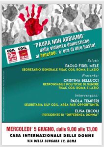 Mercoledi 5 giugno dalle 9:00 alle 13:00 presso la Casa Internazionale delle Donne, Via delle Lungara 19.