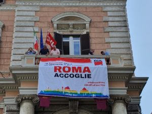 Da ora in poi questo striscione sventolerà su Piazza Vittorio per ribadire che Roma è una città che resiste e accoglie e che la Cgil non verrà meno alla sua funzione di presidio di legalità e giustizia sociale”.