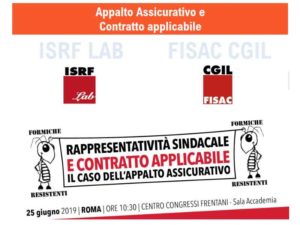 “Rappresentatività sindacale e contratto applicabile. Il caso dell’appalto assicurativo” è il tema del convegno organizzato il 25 giugno 2019 dalla Fisac CGIL presso il Centro Congressi Frentani di Roma.