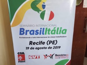 Nell’ambito della cooperazione internazionale nata tra la CGIL di Firenze e la CUT dello Stato di Pernambuco, lunedi 19 agosto, nella sede dei bancari a Recife, si é tenuto un seminario di interscambio tra sindacalisti della CUT e della FISAC CGIL di Firenze.