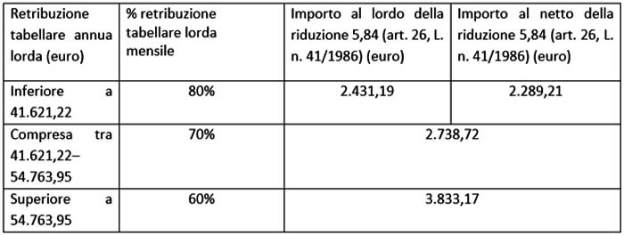 b) – Accesso al fondo emergenziale: i colleghi che non hanno i requisiti per i prepensionamenti di cui al punto a), e che non aderiscono alla successiva opzione c), potranno accedere, su base volontaria, al fondo emergenziale con una risoluzione unilaterale del rapporto di lavoro. L’accesso al fondo emergenziale consente un sostegno al reddito per 24 mesi ed eventualmente un sostegno al reddito per ulteriori 12 mesi finanziato dal FOC se verranno utilizzati i servizi di outplacement forniti, su richiesta, dall’Azienda. Coloro che aderiranno a questa opzione riceveranno un incentivo pari a 18 mensilità lorde (in aggiunta alle ordinarie spettanze di fine rapporto, ivi comprese le ferie maturate e non godute e TFR) quale corrispettivo della non opposizione al licenziamento. Di seguito si riportano i massimali mensili previsti dall’articolo 12, comma 3, del D.I. n. 83486/2014, per l’assegno emergenziale, aggiornati per l’anno 2019, nonché le retribuzioni mensili di riferimento per l’applicazione degli stessi. L’importo indicato in prima fascia, calcolato sull’80% della retribuzione lorda mensile, è indicato al lordo e al netto della riduzione prevista dall’articolo 26 della legge n. 41/1986, che attualmente è pari al 5,84%.