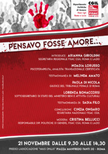 Trasmettiamo di seguito il link della testimonianza di Sadia Filo dell’evento “PENSAVO FOSSE AMORE” che si è svolto in data 21 novembre 2019 presso l’Associazione “MAIS ONLUS” Piazza Manfredo Fanti, 30 – Roma
